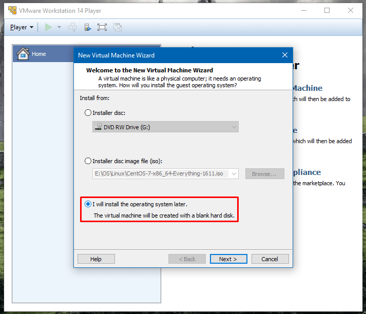 Follow the steps below to install CentOS 7 within VMware Workstation Player.