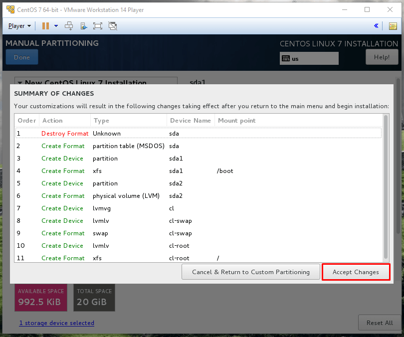 04. Partitioning: This step is very important. Making a mistake in this step may cause your hard disk formatted. Click on “Installation Destination”. After that, select “I will configure partitioning” in the next dialogue box. Then select “Click here to create them automatically”. Then click “Done” and “Accept changes”.